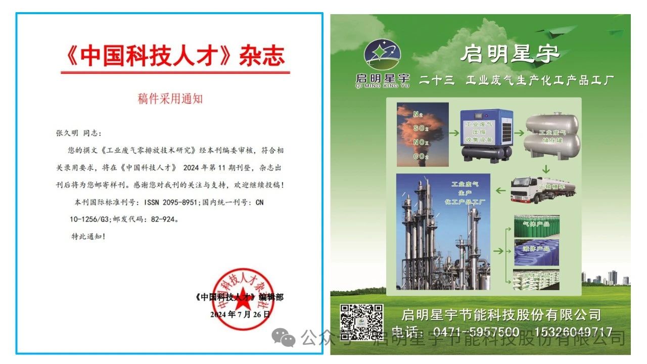 新年巨著,啟明星宇節能科技股份有限公司《工業廢氣零排放技術研究》科研論文在《中國科技人才》期刊成功發表